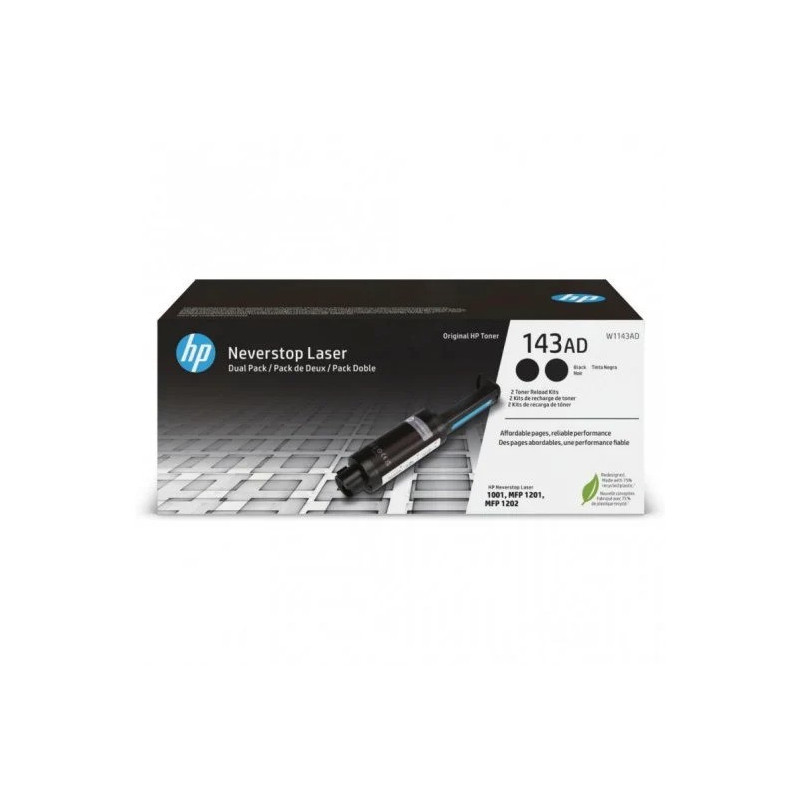 Compatibilidad: Los kits de recarga de tóner HP 143 funcionan con: HP Neverstop Laser 1001, 1201, 1202